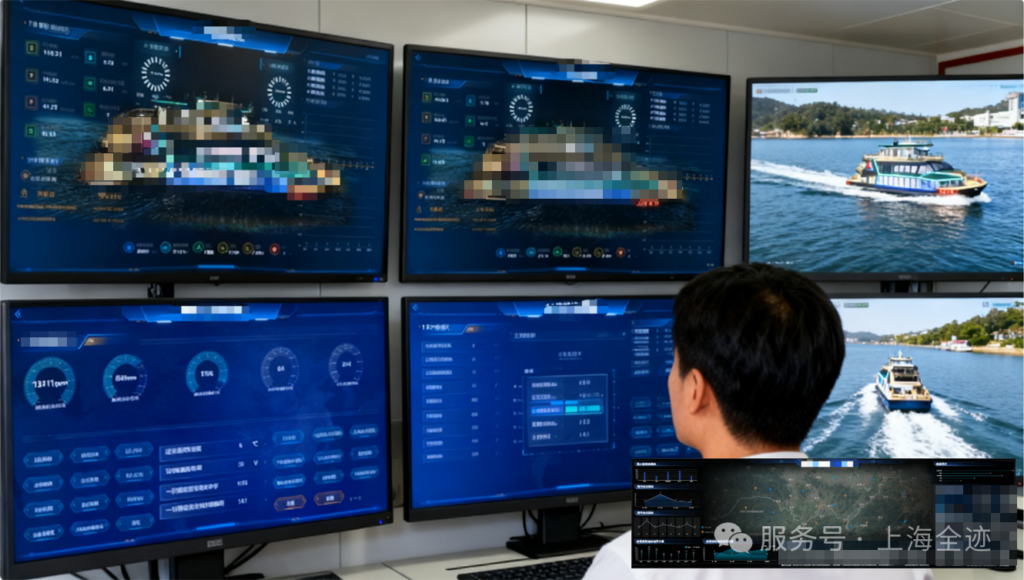 船舶远程监控系统是以数字化仪表盘为核心,实现对船舶运行状态的全局感知与精细管理。系统实时采集并展示全船传感器数据,包括多个电池簇的电压、温度、湿度,以及环境风速风向、船舶航速航向、位置经纬度、航行姿态等关键参数。同时,动态追踪船舶能效表现,减碳量、续航里程、平均能耗等统计一目了然。在动力电池监控层面,系统提供从总容量、推进功率到每个电池簇的充放电状态、继电器动作及多级温度预警的完整视图,形成从整体到局部、从实时到统计的全维度数据支撑,助力船舶安全、高效、低碳运营。